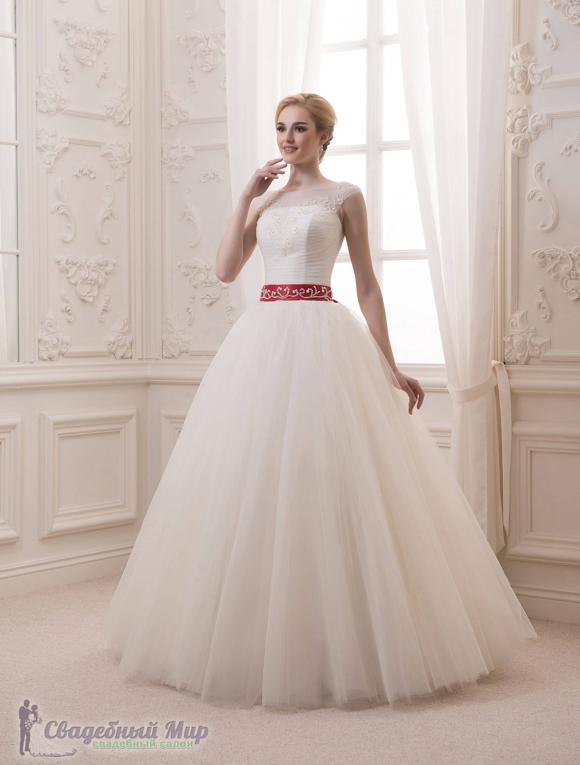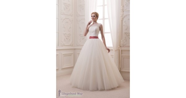 Роскошная модель свадебного платья. Воздушности платью добавляет юбка из невесомого фатина. Платье сочетает в себе простую элегантность лифа и пышность юбок. Корсет украшен узором из мелкого бисера. Линия талии украшена красным поясом. ..Цену уточняйте